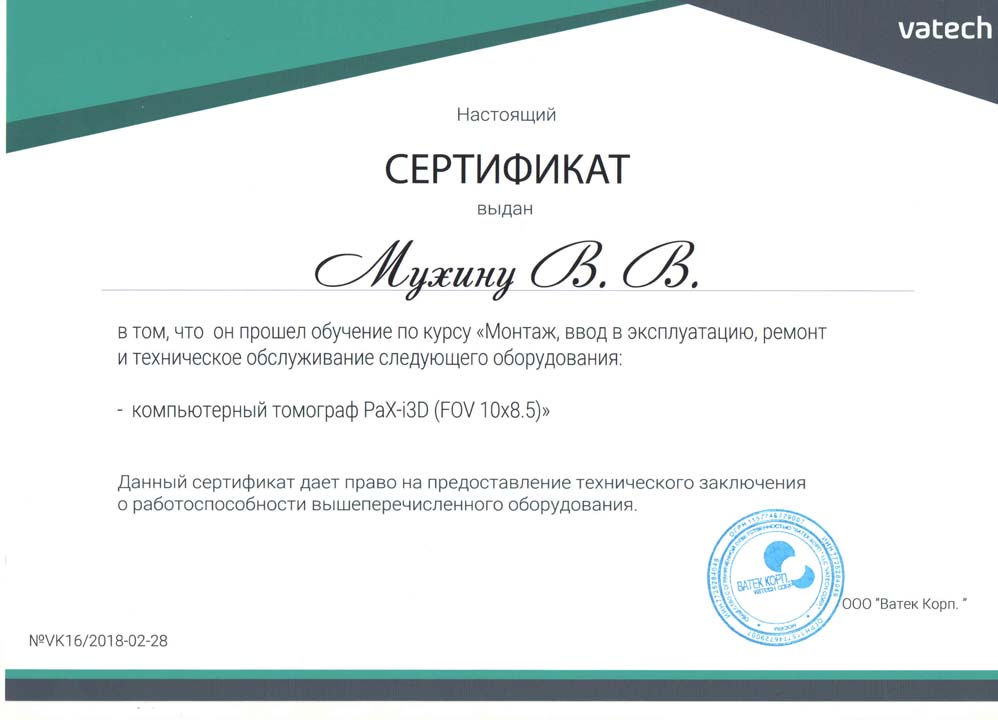 Инженер компании ООО «ГРИН ДЕНТ СЕРВИС», Мухин Валерий, успешно прошел тренинг по ремонту и обслуживанию 2D и 3D оборудования Pax-i 3D .